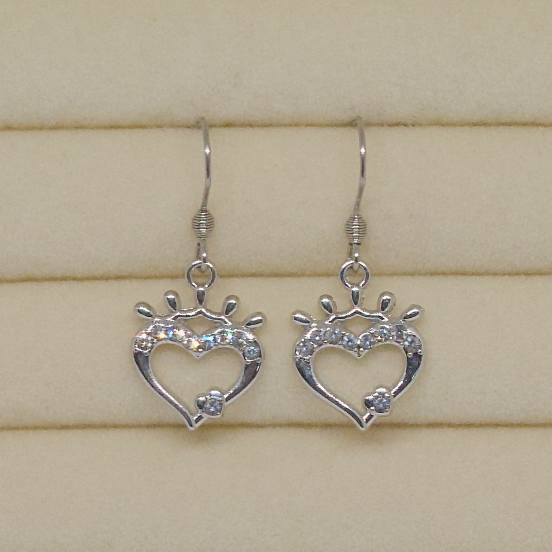 Kauniisti kimaltavat runsailla strassikivillä koristellut kruunu+sydän -riipukset.