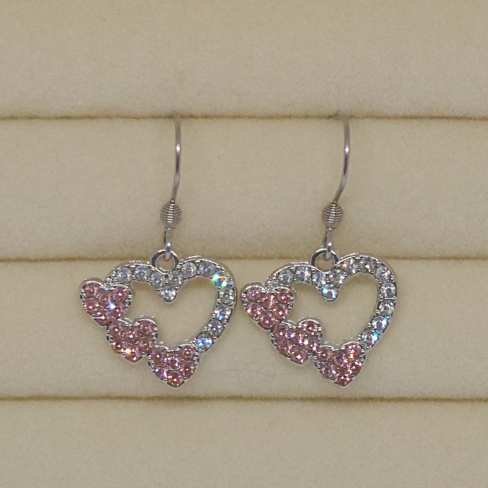 Kauniisti kimaltavat runsailla strassikivillä koristellut sydänriipukset.