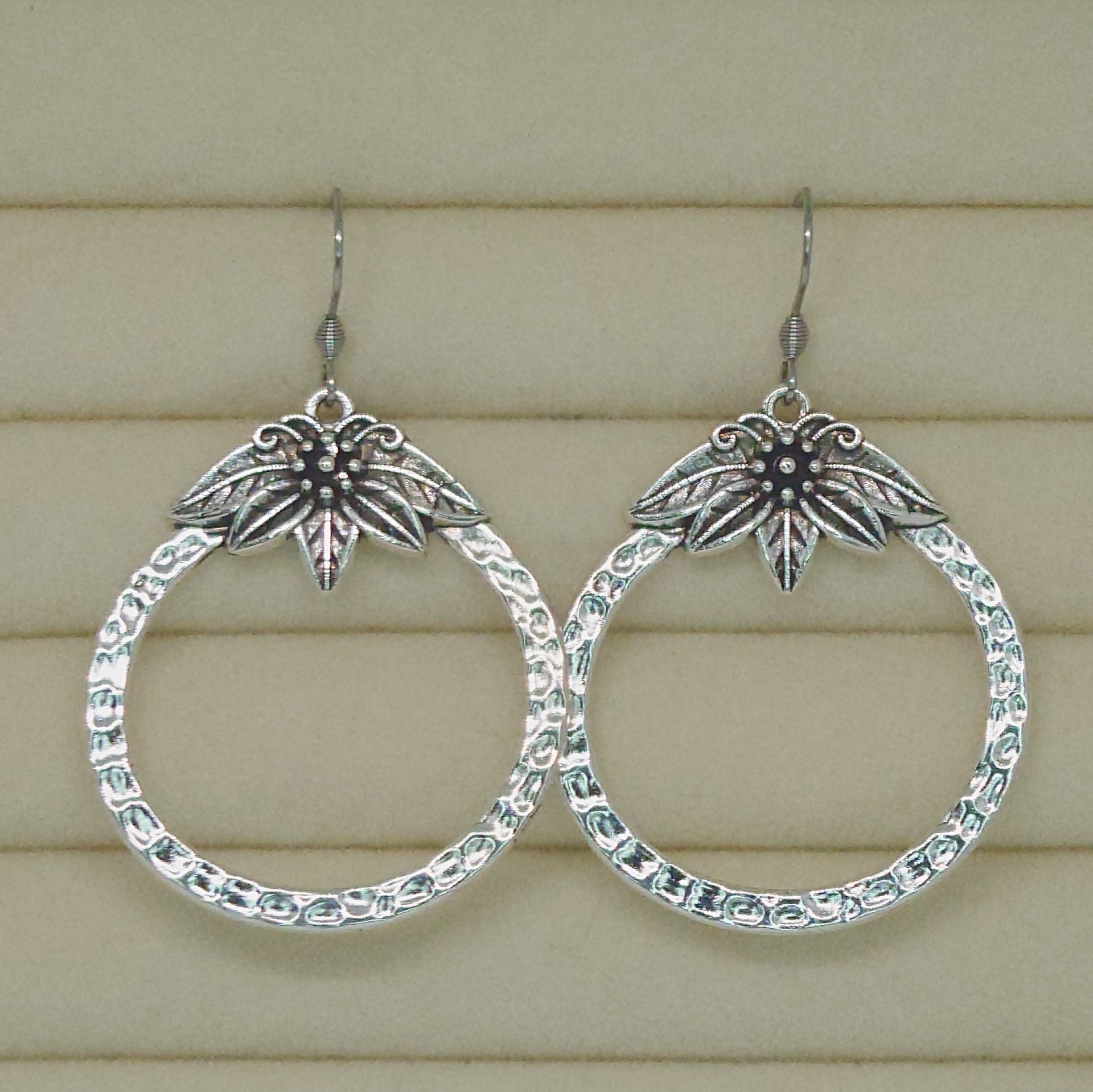 Suuret ja näyttävät renkaat, joiden taottu pinta heijastelee valoa kauniisti. Renkaiden halkaisija n.37mm.